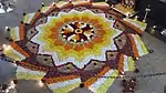 ![]() Rangoli decorations, made using coloured fine powder or sand, are popular during Diwali. | |
