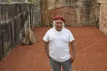 Most famously, Mundine is known for his work as the concept artist and producer of the ‘Aboriginal Memorial’. The Aboriginal Memorial is a work of contemporary Indigenous Australian art from the late 1980s, and comprises 200 decorated hollow log coffins. Mundine created this piece to coincide with the white Australian Bicentenary celebrations in 1988.2 The 200 log coffins represent 200 years of European occupation. He aimed for the log coffins to resemble “a large war cemetery.” These logs are painted in orange, white, and ochre. Their design directly references the traditional hollow log mortuary ceremony of Central Arnhem Land.[7][8] The work was realised by 43 artists from Ramingining and neighbouring communities of Central Arnhem Land, in the Northern Territory. Artists who participated in its creation included David Malangi and George Milpurrurru. The work was created to coincide with the Australian Bicentenary and commemorates those Indigenous Australians who died as a result of European settlement. It was acquired by the National Gallery of Australia, where it is on permanent display. Its first exhibition was at the Sydney Biennale in 1988, and it was the centrepiece of an exhibition of Indigenous art at Russia's Hermitage Museum in 2000. As of 2014 it stands at the entry to the National Gallery's new wing that opened in September 2010. The Memorial was central to the 1988 Biennale of Sydney and remains on permanent display at the National Gallery of Australia in the main entrance hall.
