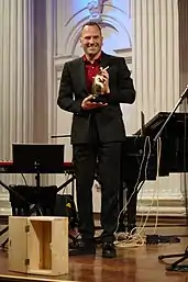 In 2007 he also joined Fishtank Ensemble, an eclectic band that plays Gypsy music from all over the world (Balkan, Turkish, Flamenco ...) and hot jazz.[32] Their music is featured in the movie Wild Target starring Emily Blunt, Bill Nighy and Rupert Everett.[33] Fishtank Ensemble has something of a cult following, including celebrities like Tim Robbins[34] and Sue Wong.[35]