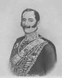 Major General of Imperial Russian Army. A graduate of the Page Corps. Participant of Russo-Turkish War (1828–29) and November Uprising in 1830. He commanded the Uhlan and Hussar troops.[4] Since 1833 commander of Courland Dragoons. Awarded with Order of St. Anna, Order of Saint Stanislaus, Order of the Red Eagle and Order of St. Vladimir.[5][6]