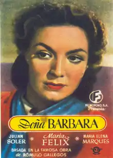 Doña Bárbara is a 1943 Mexican romantic drama film directed by Fernando de Fuentes and starring María Félix and Julián Soler. The film is based on the 1929 novel Doña Bárbara by Venezuelan author Rómulo Gallegos, who also co-wrote the screenplay.