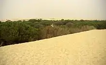 Doñana National Park or Parque Nacional y Natural de Doñana is a natural reserve in Andalucía, southern Spain, in the provinces of Huelva (most of its territory), Cádiz and Seville. It covers 543 km2 (209.65 sq mi), of which 135 km2 (52.12 sq mi) are a protected area. The park is an area of marshes, shallow streams, and sand dunes in Las Marismas, the delta where the Guadalquivir River flows into the Atlantic Ocean. It was established as a nature reserve in 1969 when the World Wildlife Fund joined with the Spanish government and purchased a section of marshes to protect it.[2] The eco-system has been under constant threat by the draining of the marshes, the use of river water to boost agricultural production by irrigating land along the coast, water pollution by upriver mining, and the expansion of tourist facilities.[3] It is named after Doña Ana de Silva y Mendoza, wife of the 7th Duke of Medina Sidonia.
