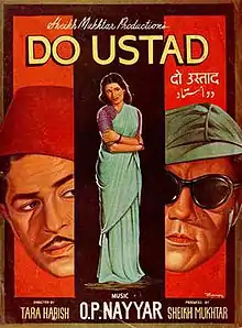 Do Ustad (transl. Two masters) is a 1959 Indian Hindi-language crime thriller film, directed by Tara Harish, produced by Sheikh Mukhtar and starring Mukhtar, with Raj Kapoor and Madhubala.[2] One of the earliest Bollywood films to deal with "lost and found" formula, Do Ustad revolves around two brothers separated in their childhood who grow up to become thieves.[3] Moderately received by critics, the film became a commercial success.[4]