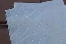 Dobby, or dobbie, is a woven fabric produced on the dobby loom, characterised by small geometric patterns and extra texture in the cloth.[1] The warp and weft threads may be the same colour or different. Satin threads are particularly effective in this kind of weave as their texture will highlight the pattern.[2]
