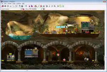 The world is rendered in 2.5D, and the world can smoothly scroll to follow a creature. The world contains many different items, which creatures can interact with in a variety of ways. Objects are written using an object-oriented programming technique - each item has their own scripts which determine how they interact with creatures and with other objects. Objects are detected by a creature by being in its line of sight, which excites a neuron dedicated to that class of objects.[8] All objects within the world are categorised, once a creature knows the name of one object, they will associate it with all other objects in that same grouping.[72][102] The object-oriented approach means that the games are highly modifiable.[65] Some of the items in the world are dangerous to norns.[103]