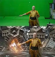 Production moved to Longcross Studios in Surrey, England on November 11,[152] and was scheduled to stay there until March 2016.[153] The real Kathmandu street that led into the fictional Kamar-Taj courtyard was replicated at Longcross, which production designer Charles Wood described as "very hard because Kathmandu is a most beautiful city and it's steeped in history. To transition from that level of detail and history, with the shape of the streets, the warping of the buildings, these ancient bricks and these ancient tiles, was a real challenge." For authenticity, the set was dressed with real food, and populated with dogs, pigeons, and Nepalese extras, many of whom were relatives of people who live on the real Kathmandu street.[147] The inside of Kamar-Taj was also constructed at Longcross, with "sculptors creating beautiful columns and wall decorations and craftsmen building screens and doors to evoke the exotic feel of the ancient sanctuary." Wood's goal was to make the set feel like the Ancient One and her disciples actually lived there, and give it a "truly spiritual, truly magical" feel, while integrating it into a real building that the production filmed in Kathmandu. This and the Kathmandu street were two of twenty-one sets that the crew built at Longcross. Others included Doctor Strange's Sanctum Sanctorum, and a Hong Kong street "complete with over 80 neon signs and a giant roof to keep the rain out."[147] Citypoint on Ropemaker Street, London, doubled as the New York City building where the Ancient One falls to her death.[154]