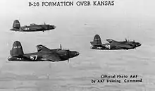 Dodge City Army Airfield became one of three B-26 Marauder training bases, the others being Tarrant Army Airfield, and Laughlin Army Airfield, both in Texas. The first planes to be used for instruction, a dozen B-26's, were delivered to Dodge City Army Air Field on 26 April 1943. On the same day, the first group of officer students, 36 in all, reported for B-26 transition training. No time was lost, for on 28 April the first training flights began. Most of the graduates were sent overseas to Ninth and Twelfth Air Forces in England and the Mediterranean Theaters, although Tenth Air Force in the CBI also flew Marauders.