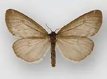 The wingspan is about 30 millimetres (1.2 in). Adults are on wing from June to July depending on the location.