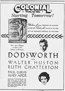 - "Mr. and Mrs. Walter Huston Star Tonight in "Dodsworth"". Youngstown Vindicator (Ohio). 1937-10-04. p. 10. Retrieved 2021-06-30.