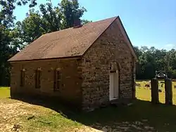 The Dog Branch School is a historic one-room schoolhouse building in rural southeastern Carroll County, Arkansas. It is located about 3 miles (4.8 km) east of the hamlet of Osage, a short way south of United States Route 412 off County Road 927. It is a single story gable-roofed structure, built out of rough-hewn fieldstone. It has a very limited, vernacular amount of Romanesque Revival and Italianate features, including an arched entry opening and segmented-arch openings for the windows. The school was built in 1898, and is unusual mainly because most district schools built in the region at the time were built out of wood. Its builders, the Bailey Brothers, also built the Stamps Store in Osage.[2]