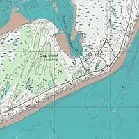 During World War II, Dog Island was part of Camp Gordon Johnston. Four separate camps comprised the complex: three for regimental combat teams, and the fourth for the headquarters and support facilities. Dog Island was used for amphibious landings and airdrops.