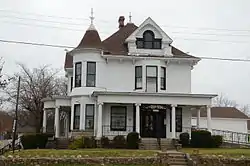 The Martone House is a historic house at 705 Malvern Avenue in Hot Springs, Arkansas. It is a 2+1⁄2-story wood-frame structure, with a hip roof, clapboard siding, and a stone foundation. It has Queen Anne Victorian styling, with a gabled projecting window bay, rounded turret projecting at one corner, and a wraparound porch. It was built in 1907 for Thomas and Nina (Cascoldt) Doherty, and is notable as one of Hot Springs' first motel properties, as it was where the Dohertys not only let rooms in the house, but also built cabins to the rear of the property to house more visitors.[2]