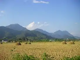 Doi Nang Non consists of a long hill tract that lies on the west side of the highway between Chiang Rai and Mae Sai. The greater part of the range is in Mae Sai District, extending west and southwest of Pong Pha along the border with Myanmar.[2] The mountain range is an unusual land feature when seen from certain angles as its silhouette takes the shape of a reclining woman with long hair. Its highest point is Doi Tung, which corresponds to the belly of the lady.[1]