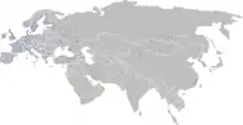 D. sylvestris can be found throughout Western Europe and across central Asia to China, and it has also been sighted in northern Africa. It is not known to live outside of this region of the world.[1] This species of wasp prefers temperate climates.[9] In these regions it can be found in most habitats, including trees and shrubs, hanging from houses, and in the ground. It is often found in both urban and rural areas.[2]