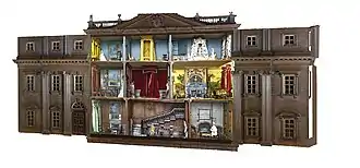 The Stettheimer Dollhouse was constructed in New York City by Carrie Walter Stettheimer between 1916 and 1935. Many contemporary artists made miniatures of their art for the dollhouse, including Marcel Duchamp, Alexander Archipenko, George Bellows, Gaston Lachaise, and Marguerite Zorach.[18][19] It is 28" high and contains 12 rooms, and is now located at the Museum of the City of New York.[20] The 68 miniature Thorne Rooms room boxes, each with a different theme, were designed by Narcissa Niblack Thorne and furniture for them was created by craftsmen in the 1930s and 40s. They are now at the Art Institute of Chicago, Phoenix Art Museum and the Knoxville Museum of Art in Knoxville, Tennessee.[21]
