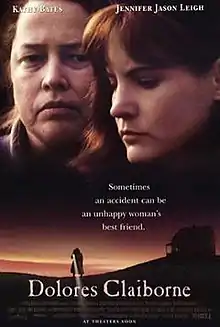 Dolores Claiborne is a 1995 American psychological thriller drama film directed by Taylor Hackford and starring Kathy Bates, Jennifer Jason Leigh, Christopher Plummer, and David Strathairn. The screenplay by Tony Gilroy is based on the 1992 novel of the same name by Stephen King. The plot focuses on the strained relationship between a mother and her daughter, largely told through flashbacks, after her daughter arrives to her remote hometown on a Maine island where her mother has been accused of murdering the elderly woman for whom she had long been a care-provider and companion.[4]