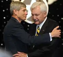 Overton was honored by the Gathering of Eagles program of the Air Force Air Command and Staff College twice, once in 1999 and again in 2008.[3] On 18 September 2009, Overton was further presented with the Distinguished Service Cross by Air Force Chief of Staff General Norton Schwartz, who in a speech noted that Overton had been "not properly recognized" for the 28 June 1952 bombing run. Overton would also finally be presented with his Distinguished Flying Cross and Silver Star Medals, 57 years after the actions. It followed a six-month appeal process initiated by Overton.[6]
