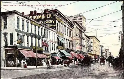 Soon after arriving to Memphis in May 1859, Domenico began working for his uncle, who ran a thriving wholesale liquor business.[1][2][3] In 1866, Domenico saved up enough money to start up his own produce distribution business, "D. Canale & Co.," which grew considerably throughout the Southern United States as he imported fruits from around the world.[1][2] The company also packaged and distributed a fine bourbon whiskey called “Old Dominick,” and a number of beers including Pabst Blue Ribbon and Champagne Velvet. It was a natural extension for a produce house to distribute beer, since beer at that time was not pasteurized, and produce houses had refrigeration.[2]