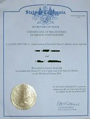 - "Domestic Partners Registry". California Secretary of State. Archived from the original on 30 August 2019. Retrieved 8 January 2020.