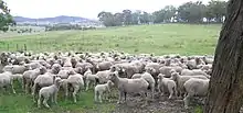 For breeders intent on strict improvements to their flocks, ewes are classed and inferior sheep are removed prior to mating in order to maintain or improve the quality of the flock.[31] Muffled (wooly) faces have long been associated with lower fertility rates.[32] Stud or specially selected rams are chosen with aid of objective measurements, genetic information and evaluation services that are now available in Australia and New Zealand.[33][34] The choice of mating time is governed by many factors including climate, market requirements and feed availability. Rams are typically mated at about 2.5% depending on the age of the sheep, plus consideration as to the size and type of mating paddocks.[32] The mating period ranges from about 6 to 8 weeks in commercial flocks. Longer mating times result in management problems with lamb marking and shearing etc.[31]
