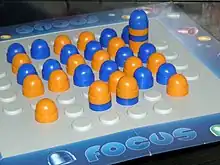 Focus is an abstract strategy board game, designed by Sid Sackson and first published in 1964 by Kosmos. The game has been re-published many times since, sometimes under the titles Domination or Dominio. Focus won the 1981 Spiel des Jahres and Essen Feather awards. The game appears in Sackson's A Gamut of Games in the section New Battles on an Old Battlefield.