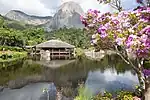 It is in the mountainous region of the state and is marketed as the "Green City", since it is surrounded by subtropical rainforest, much of which has disappeared in the rest of the region. Within its borders lie mountains of up to 2000m, amongst which is the well-known Pedra Azul State Park consisting mainly of a quartzite rock jutting out of the surrounding landscape at 1,822m above sea level. It has a blue tinge to the stone due to the kind of lichens which grow on it, which gives the name to the formation and the park.