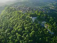 Domme is famous for its fortifications, which were completed by 1310. The Porte des Tours with the main entrance loads to two drum-shaped towers of stone on the east and west part of the wall. The walls, first completed in 1310, contain two more gates.[4]