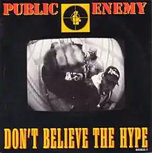 "Don't Believe the Hype" is a song by hip hop group Public Enemy and the second single to be released from their second album, It Takes a Nation of Millions to Hold Us Back. The song's lyrics are mostly about the political issues that were current in the United States at the time of its release. "Don't Believe the Hype" charted at number 18 on the U.S. R&B chart and also reached a high of 18 in the UK Singles Chart in July 1988. Chuck D has stated the song was inspired by the works of Noam Chomsky.[2]