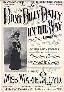 "Don't Dilly Dally on the Way", subtitled "The Cock Linnet Song" and often credited as "My Old Man (Said Follow the Van)", is a music hall song written in 1919[1] by Fred W. Leigh and Charles Collins, made popular by Marie Lloyd.