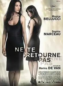 Don't Look Back (French: Ne te retourne pas) is a 2009 French thriller film directed by Marina de Van and starring Sophie Marceau and Monica Bellucci.[2] Written by Jacques Akchoti and Marina de Van, the film is about a wife and mother of two children who suddenly notices changes to the way the family home is arranged and feels that her body is transforming without anyone around her noticing it. While others believe her perceptions are due to fatigue and stress, she is sure that something more profound is happening, and her search to understand these mysterious perceptions prompts her to track down a woman in Italy who holds the key to the mystery.[3]