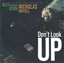 Don't Look Up (Soundtrack from the Netflix Film) is the soundtrack to the 2021 film Don't Look Up directed by Adam McKay. The film's original score is composed by Nicholas Britell in his fourth collaboration with McKay, following The Big Short (2015), Vice (2018) and the HBO television series Succession (2019–2022), where McKay was the executive producer. Britell's score consisted of widest range of instrumentation used in the film, that produces multiple genres and musical styles, ranging from big-band jazz, traditional orchestral sounds and electronics and offbeat music.[1] The album was led by the promotional single "Just Look Up" performed by Ariana Grande and Kid Cudi. that was described as a "love song for the end of the world".[2][3] The song was issued on December 3, 2021 for streaming and digital download.[4] The album featuring Britell's original score and an original song titled "Second Nature" by Bon Iver, was released on December 10, by Republic Records.[5] The musical score received critical acclaim and led him receiving several nominations, including the Academy Award for Best Original Score, his third Academy Award nomination, following Moonlight (2016) and If Beale Street Could Talk (2018).[6]