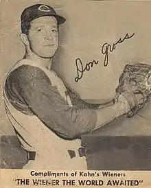 Donald John Gross (June 30, 1931 – August 10, 2017) was an American baseball player whose 13-year professional career (1950–52; 1954–63) included all or parts of six seasons of Major League Baseball with the Cincinnati Redlegs (1955–57) and Pittsburgh Pirates (1958–60). A left-handed pitcher, Gross stood 5 feet 11 inches (1.80 m) tall and weighed 186 pounds (84 kg). He attended Michigan State University.