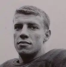 Born in 1928 in St. Louis, Mo., the son of Lyda and Russell Peterson. In his youth, his family moved to Racine, WI. He attended St. Catherine's High School and played football for the undefeated Angel's championship football team in 1945.[1] After graduating, Don enlisted in the U. S. Army and served in Japan, where he organized sports activities for U. S. troops after World War II. After returning, he accepted a scholarship to play football for the University of Michigan, and played football for the Michigan Wolverines football team from 1948 to 1951.[3][4][5][6] He played in the 1951 Rose Bowl game and finished the 1951 season as the fourth leading ground gamer in the Big Ten Conference.[7] During the 1951 season, he scored two touchdowns against Iowa and rushed for a career-high 104 yards against Illinois. In his final game for Michigan, Peterson rushed for 70 yards and scored the only touchdown in a 7–0 win over Ohio State.[8] At the end of the 1951 season, he was selected as the Most Valuable Player on the 1951 Michigan Wolverines football team and selected to play in the 1951 Blue/Grey All-Star Classic .[7] After graduating with honors with a major in zoology, he went on to graduate from the University of Michigan, School of Dentistry. His older brother, Tom Peterson, played fullback for Michigan in 1944–1949.[7][9] Don was selected by the Green Bay Packers in the 17th round (196th overall pick) of the 1952 NFL Draft.[10]