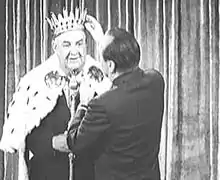 Wilson accompanied Benny into television in 1950, remaining with him through the end of the series in 1965. On television, the fat jokes were toned down only slightly, mostly because the real Wilson was not as impossibly large as the radio Wilson was described. These appearances also often involved the fictional character of Don's equally hefty, aspiring announcer son, Harlow (played by Dale White). Wilson co-starred with Benny in Buck Benny Rides Again (1940) and voicing a caricature of himself in The Mouse that Jack Built, a 1959 Warner Brothers spoof of The Jack Benny Program directed by Robert McKimson. Wilson appeared in the Broadway show Make a Million, which opened on October 23, 1958.[4]