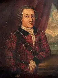 Lochiel was appointed colonel of the Régiment d'Albanie by Louis XV and made a member of the Order of Saint Michael; he was also knighted by Charles.[32] Lochiel succeeded his father, who died in 1747, as 2nd Lord Lochiel in the Jacobite peerage. He never returned to Scotland and died at Bergues on 26 October 1748, where he is buried in the Communal Cemetery. He was succeeded by his son John, who was allowed home in 1759 but died in 1762; the family estates were restored in 1784.[33]