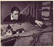 Donald Featherstone was born on 20 March 1918 in London.[1] and during the Second World War, he joined the Royal Armoured Corps. An account of his war experiences can be found in his book Lost Tales.[2] Professionally a physiotherapist living in Southampton, who worked for both Southampton Football Club and Hampshire County Cricket Club.[1] Featherstone was first introduced to wargaming by reading H. G. Wells' Little Wars and his first opponent was his brother. His second opponent was Tony Bath many years later in 1955. His wife saw a description of a solo wargame being played in Southampton by Tony Bath and Featherstone then got in touch.[3][4][5]