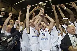 The whole squad that won the 2010 title returned for the next season, except for Tim Blue. In 2010 they became the first Dutch basketball team to take part in the qualifying rounds of the new Euroleague.[4] In the regular season Donar ended on the second place, while Jason Dourisseau was named the Dutch League MVP. The team won a second NBB Cup in 2011, after beating WCAA Giants[5] The team did eventually lost in the DBL Finals to Zorg en Zekerheid Leiden 4–3 in an historic game 7 which included three overtimes.[6]