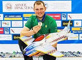 At the 2015 World Air Games Paužuolis won the gold medal in the aeromodelling F3P indoor aerobatics event.[2] Paužuolis won one gold and one silver medal at the 2023 FAI F3P World Championships.[3][4]