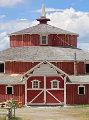 The Doncaster Round Barn, also called "Bayers' Barn" and "the Round Barn at Twin Bridges" is a three-story, wood-framed round barn located about 1.5 miles (2.4 km) north of Twin Bridges, Montana. Built about 1882 by mining entrepreneur Noah Armstrong to house his race horses, and featuring a 20 feet (6.1 m)-wide indoor circular aisle that was used for exercising horses, it is a National Register of Historic Places property notable for its unique architecture and as the birthplace of the Thoroughbred racehorse, Spokane, winner of the 1889 Kentucky Derby.[2]