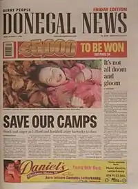 The paper was first published in Derry in 1903, but at the start of the Second World War, the paper's owners decided to move production across the border to Letterkenny, County Donegal, in an aim to avoid possible harsh censorship laws, which saw the paper's rival, the Derry Journal, being banned for a short time on both sides of the border.[1] The paper has always had a nationalist editorial policy and so was able to attract readers from both County Donegal and the mostly nationalist city of Derry. The paper became the first to be based in Letterkenny and after the war had ended, it decided to keep production in the Republic and gradually began to focus more on northern Donegal rather than its original Derry base. Derry has always been an important centre of employment for the north of Donegal with many Donegal families also moving across the border, which led to papers such as the Derry Journal and the Derry People, building up a loyal readership in both jurisdictions. Throughout its history, the paper has remained under the control of the Lynch family, whose North West of Ireland Printing and Publishing Company is the largest newspaper group in Ireland still family controlled.