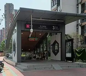 Dongshahu Station (Chinese: 东沙湖) is a station of Line 5, Suzhou Rail Transit.[1] The station is located in Suzhou Industrial Park, Jiangsu. It has been in use since June 29, 2021; when Line 5 first opened to the public.[2]