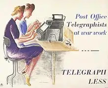 During World War Two, Nachshen produced poster designs for a number of high-profile campaigns, notably the Make Do and Mend campaign run by the Board of Trade and also Telegraph Less for the General Post Office. She continued with her book illustration work during the War, producing designs for versions of "Diary of a Madman" by Nikolai Gogol and a 1945 collection of short stories by Fyodor Dostoyevsky as well as books by Enid Blyton.[7] After the War, Nachshen lived in London and continued to illustrate Russian novels and poetry, mainly for the publishers Constable & Co and also for the Lindsay Drummond company.[1] For the Russian novels, Nachshen used scraperboard to create dramatic illustrations that resembled a style of eastern European woodcuts, while for the children's book that she illustrated she used much lighter pen drawings.[7]