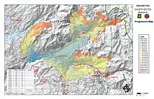 The Donnell Fire was a wildfire that started on August 1, 2018 due to an unattended illegal campfire,[3] near Donnell Reservoir, burning around California State Route 108 in Tuolumne County, California and in the Stanislaus National Forest.[4][5][6] It spread rapidly, and the Forest Service closed a California state highway, many forest service roads, campgrounds, wilderness areas, access to privately-owned inholdings, and the Pacific Crest Trail.[7] The fire burned 36,450 acres (147.5 km2), and destroyed 54 major structures and 81 minor structures, before the fire burned out on October 1. There were nine injuries caused by the fire, but no deaths.[1]