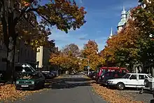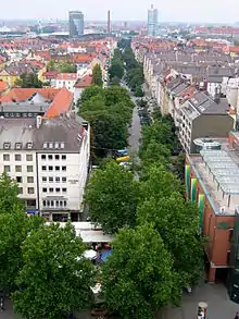 The Donnersbergerstraße (often written incorrectly as Donnersberger Straße) is a street in the Munich district Neuhausen, in the city district of Neuhausen-Nymphenburg. It connects the Rotkreuzplatz with the Arnulfstraße in the north-south direction. It is named after the Privy Councilor and Supreme Chancellor of the Bavarian elector Maximilian I, Joachim Freiherr von Donnersberg (1561–1650), who came from the Munich patrician family, Donnersberger.