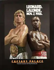 In August 1988, a fight between reigning WBC light heavyweight champion Donny Lalonde and 3-division champion "Sugar" Ray Leonard was agreed upon. The fight was a rarity in boxing as two titles from different divisions would be on the line; Lalonde's WBC light heavyweight title and the newly created WBC super middleweight title. As such, the two fighters would fight at the 168-pound super middleweight limit.[1] Leonard was ending his third retirement, which he had entered the previous year after defeating Marvin Hagler by a controversial split decision.[2] Leonard and Lalonde agreed to split a $20 million purse with Leonard getting $15 million and Lalonde earning a career-high $5 million. Rather than have an outside promoter, Leonard and Lalonde's teams agreed to co-promote the fight in a joint partnership with the Coors Brewing Company sponsoring the bout. However, there was some controversy prior to the fight when Lalonde refused to wear gear bearing the Coors logo nor participate in promotion for the company. Coors had guaranteed an additional $1 million in each fighters purse and Leonard's lawyer and adviser Mike Trainer threatened to withhold the Coors money from Lalonde, stating "Their money is going to go to a charity of Donny's choice. He's not getting it." He also called the joint-partnership a "nightmare" due in part to problems with Lalonde's manager Dave Wolf.[3]