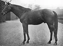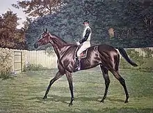 Donovan (1886–1905) was a British Thoroughbred racehorse and sire. In a career that lasted from 1888 to 1889, he ran twenty-one times and won eighteen races. He was the leading British two-year-old of 1888 when he won eleven of his thirteen starts. At the age of three Donovan won The Derby and the St Leger: he failed to win the English Triple Crown owing to a narrow and probably unlucky defeat in the 2000 Guineas. He set a world record[1] by earning a total of £55,443 in win prize money. Donovan was a modest success as a stallion. He died after being injured in an accident in 1905.