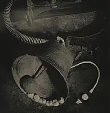 The surrealist and abstract images throughout the album booklet are linked to the album's content. "Gouge Away" is represented by a picture of a spoon containing hair, laid across a woman's torso; a direct pictorial representation of heroin, with the spoon and the hair being horses.[43] The image "As Loud As Hell" shows "a ringing bell", with a set of teeth; this alludes to the line "it shakes my teeth" in the song "I Bleed". "Walking with the Crustaceans" is a visual representation of the lyrics to "Wave of Mutilation". Larbalestier later commented that he was interested in "early Surrealist stuff" at this time.[42]