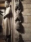 Art historians detect at least two different hands working simultaneously on the structure's architectural elements, in particular the two outer pier capitals (which seem to be earlier in style than the other capitals)[10] on either side are of a different style and type. However, it is thought that both sculptors worked on either embrasure, so that neither right nor left can be fully attributed to either hand.[11] Given the size and form of the outer piers, it is likely that the portal was originally beneath vaulting covering an ambulatory passage. A 1689 engraving also suggests this.[9]