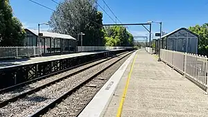 It originally had a substantial weatherboard building on Platform 2.[3] This was demolished in the 1990s and replaced with the current lightweight structures.