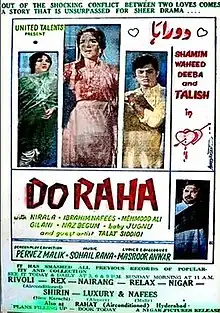 Doraha is a 1967 Pakistani musical romance film directed by Pervaiz Malik. It starred Waheed Murad and Shamim Ara, with Deeba, Talish and Ibrahim Nafees in the supporting cast. The film become remarkable due to its music, which was composed by Sohail Rana. It was co-produced by Malik and Rana under banner United Talents.[1][2]